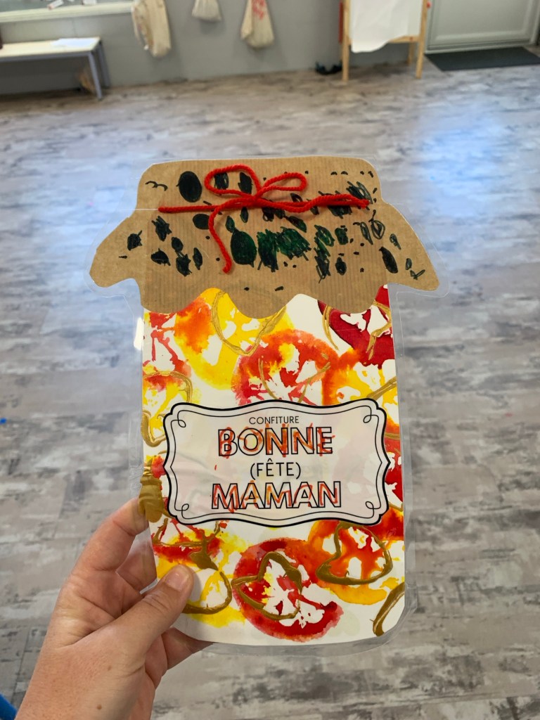 Cette année, fidèle à mon thème fruits & légumes, on a imaginé avec mes élèves une carte en forme de pot de confiture d’agrumes.